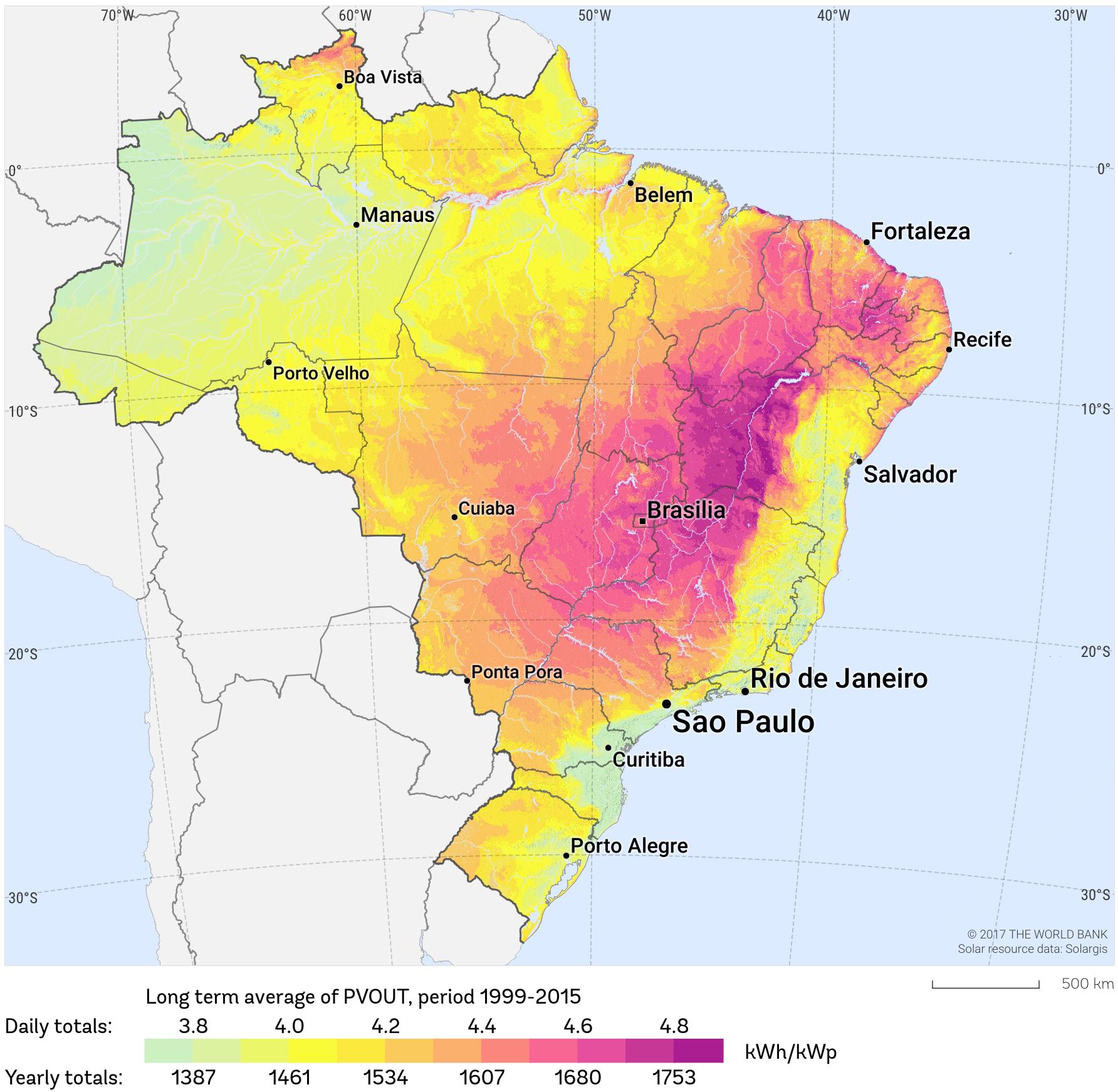 Brazil sunshine map