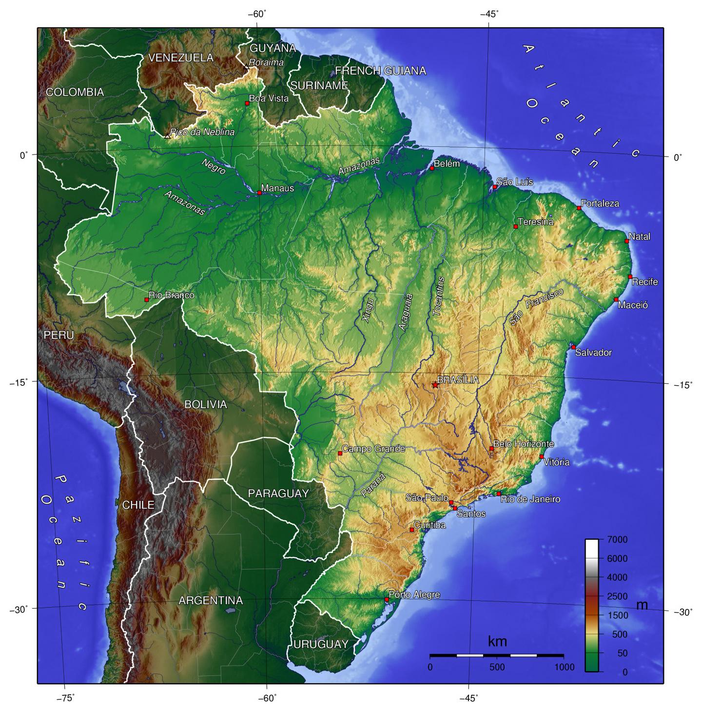 Brazil topographic map